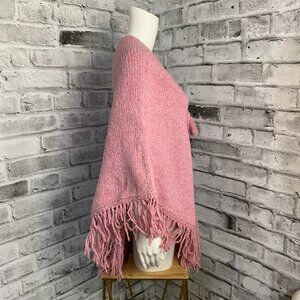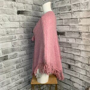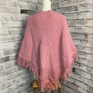 Vintage World Folk Art Pink Fringe Knit Boho Hippie Poncho