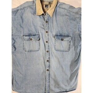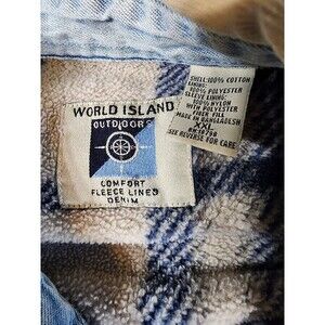 Vintage World Island Outdoor Fleece Lined Shacket Denim Jacket Mens XXL Distress