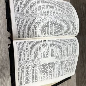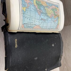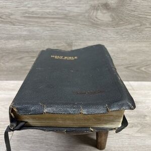 The cover is not in the best of shape and there are some flaws within the Bible but overall in good condition.