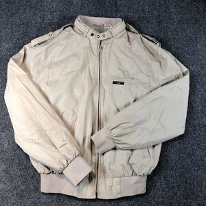 Vintage World Travel Club Bomber Jacket Mens M Beige Full Zip Lightweight Coat