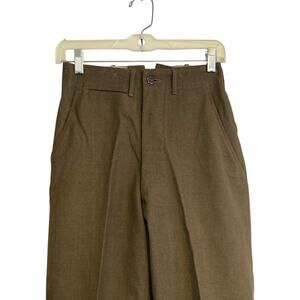 Vintage World War II Olive Drab Green Button Fly High Waist Wide Leg Pants 26x26