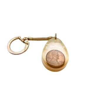Vintage Worlds Fair Penny Keychain, New York 1964 Coin set in Resin