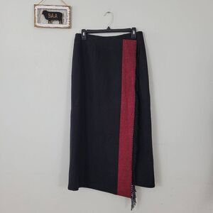 Wrap Skirt had Asymmetrical Fringed red Stripe
