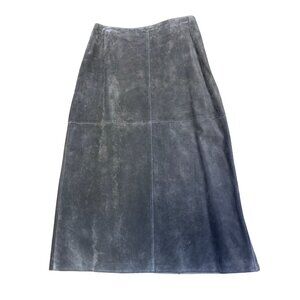 Vintage Worth Brown Leather Button-Front Midi Skirt Size 8
