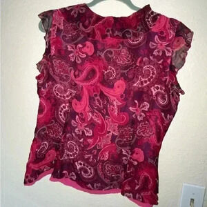 Vintage Worthington 100% Silk Pink Paisley Print Sleeveless Fitted Blouse SIZE12