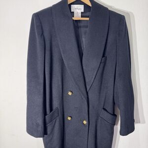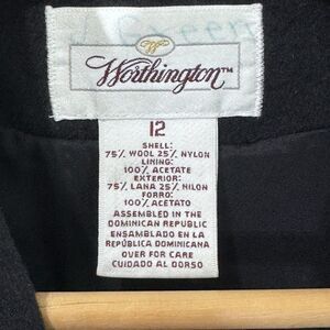 Vintage Worthington Black Double Breasted 100% Wool Long Line Coat Size 12 Retro
