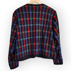 Vintage Worthington Black Red Green Houndstooth Plaid Button Down Cardigan M