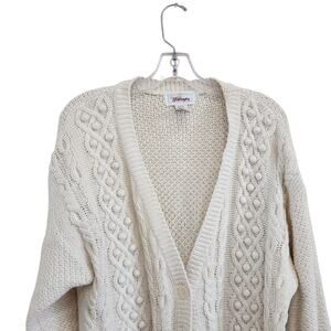 Vintage Worthington Chunky Pom Pom Granny Cottage Sweater Ivory Sz Large