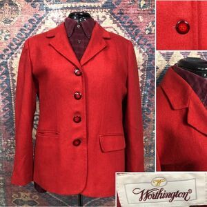 Vintage Worthington Coat Womens 14P Red 100% Wool Tweed Blazer Jacket Ladies