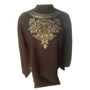 Vintage Worthington Embroidered Pullover Sweater Black Cream Pink Beaded Large