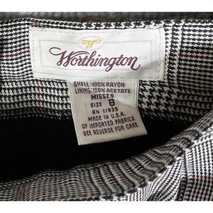 Vintage Worthington Houndstooth Plaid Midi Skirt Misses Size 8 Black Pockets USA