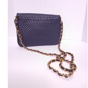 Vintage Worthington Leather Convertible Crossbody Bag Indigo Blue and Gold Chain