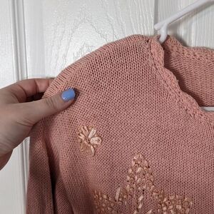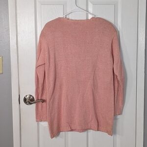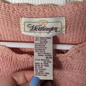 Vintage Worthington Pink Ribbon Embroidered Ramie Holiday Sweater Size Medium
