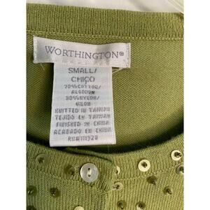 Vintage Worthington Small Sequins Green Cardigan Sweater