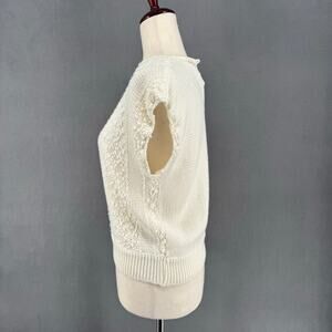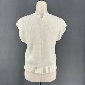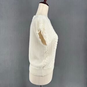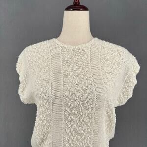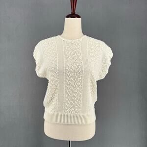 Vintage Worthington Striped Knit Cap Sleeve Sweater Womens M White Boxy Boho