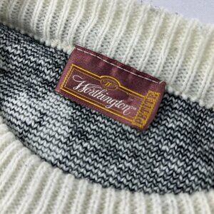 Vintage Worthington Sweater Womens Size Large Petite Black White Ivy Striped Y2K