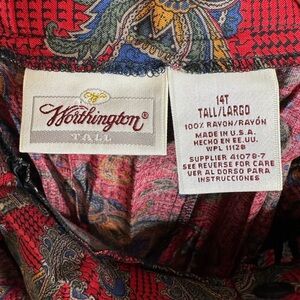 Vintage Worthington Tall Paisley Red Rayon Skirt Made in USA Women's - Size 14T