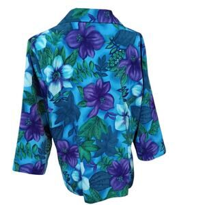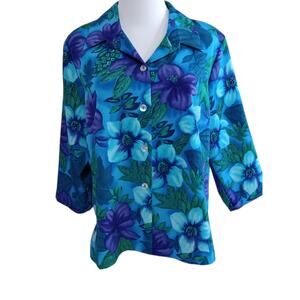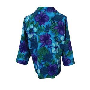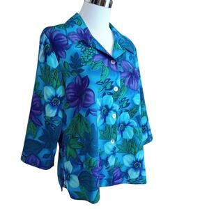 Vintage Worthington Tropical Top Blouse 14 Petite Floral Hibiscus Flowers Travel
