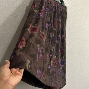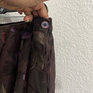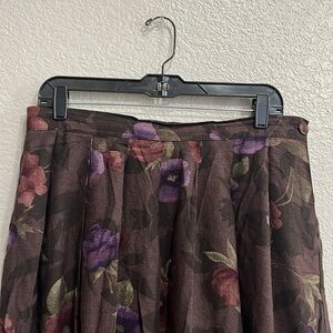 Vintage Worthington Women’s Pleated skirt Floral Print Brown Side Button Sz 16