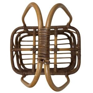 Add a touch of rustic charm to your home with this vintage woven bamboo bent basket. Featuring curved bamboo handles and sturdy woven construction, this piece is both decorative and functional.