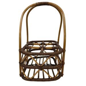 Perfect for toting your favorite beverages for the holidays for a picnic, or secured onto your bike. It could even be used to hold potted plants or bottles of wine or towels on a counter. The possibilities are endless. Perfect for any space as it has loads of texture and warmth in the neutral stain. Can hold up to 6 bottles of wine.