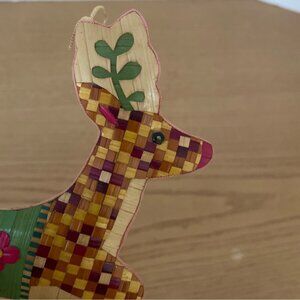 Vintage Woven Bamboo Reindeer Christmas Ornament With Tassel Handcrafted 5.5 In.