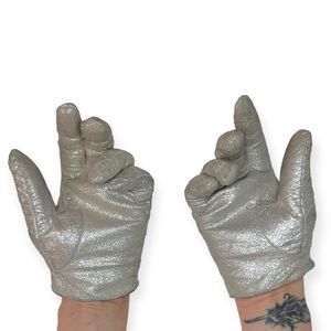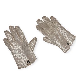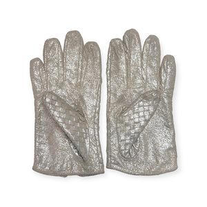 Vintage Woven Distressed Silver Leather Gloves, Size S/M