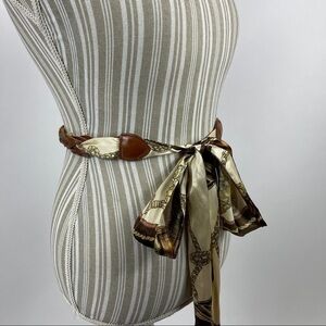 ❤️Lovely Vintage Woven Leather Silk Scarf Mixed Media Belt