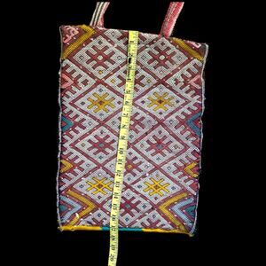 Vintage Woven Moroccan Kilim Rug Tote Bag Purse Wool Handmade Berber 18"x13"