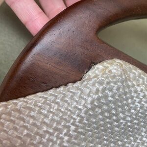 Vintage Woven Purse with Wood Clasp Handle Mid Century Style Handbags