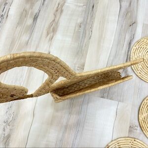 Vintage Woven Rattan Wicker Swan Goose hanging Trivet