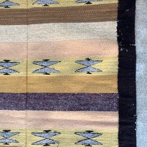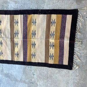 Vintage Woven Runner Rug Geometric Southwestern design flat weave