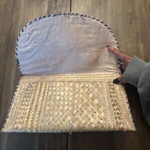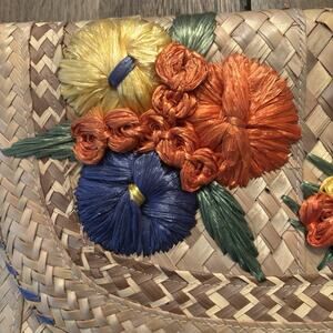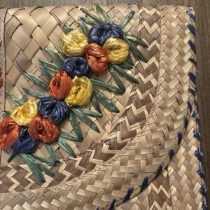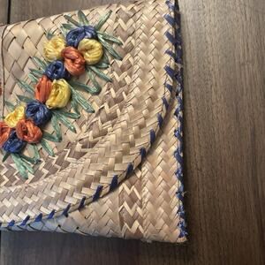 Vintage Woven Straw Floral Envelope Clutch Boho Cottagecore Beachy Summer Bag