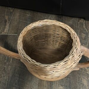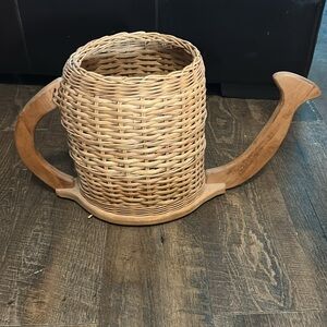 Wicker Watering Can Basket Wooden Base, Handle and Spout