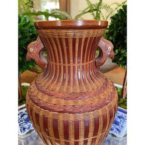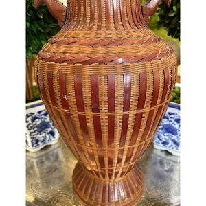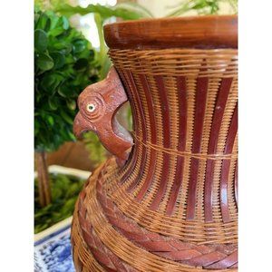 Shanghai Handicrafts - Vintage Woven Wicker Vase Basket 12” Peoples Rep. China.