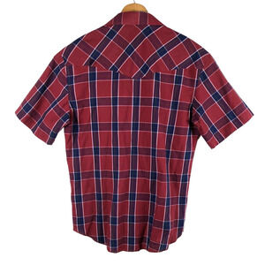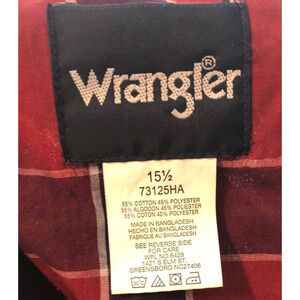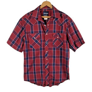 Vintage Wrangler 15 1/2 Medium Shirt Pearl Snap Red Plaid Rodeo Western Wear