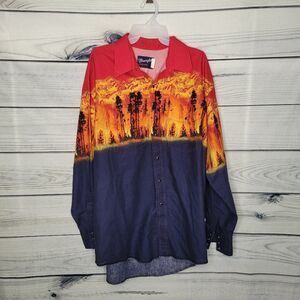 Wrangler shirt: forest graphic, pearl snap Size xxl