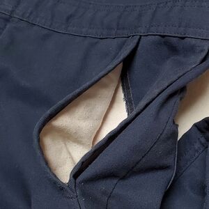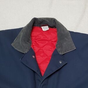 Thick and durable navy blue with a full red quilted inner lining and fully insulated.
