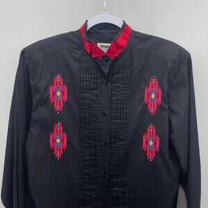 Vintage Wrangler Black Red Western Rhinestone Embroidered Button Down Shirt
