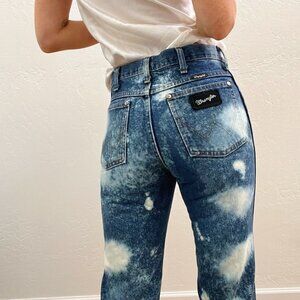 Vintage Wrangler Bleach Dyed Distressed High Waist Straight Leg Jeans