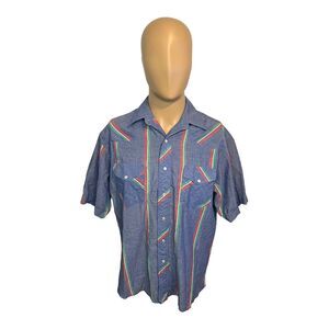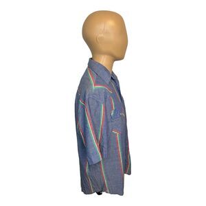 Vintage Wrangler Chambray Denim Shirt Pearl Snap Shirt Brushed Cotton Size Small