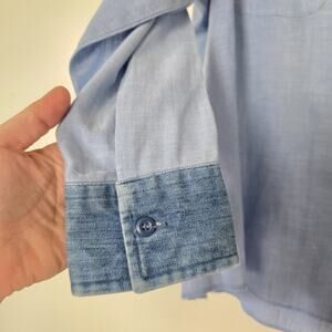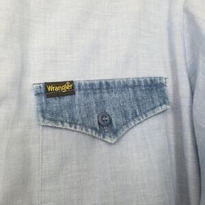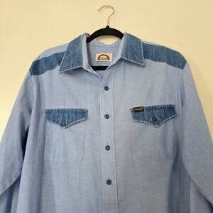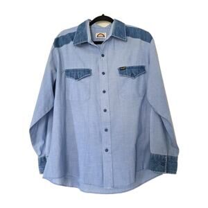 Vintage Wrangler Chambray Denim Western Button Up Shirt Men XL Rodeo Cowboy Blue