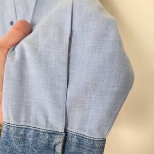 two faint spots on the right sleeve and some fading on the denim in the inside of the collar (see photos)