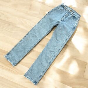 Vintage Wrangler light wash high waisted rise straight leg jeans with a zipper fly. 5 pocket design.