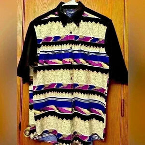 Great condition Vintage Wrangler Cowboy Cut Western Aztec Button Up Shirt Size 16 X- Long tails
