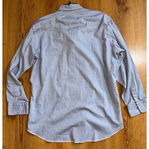 Vintage Wrangler Cowboy Cut X Long Tail Chambray Button Down USA Size Men Large