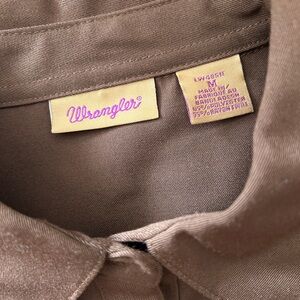 Vintage Wrangler Dark Brown Snap Down Western Shirt with Pink Embroidery