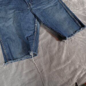 Jeans were cut into shorts. Has loose stitching on the butt seam pictured. Has distressing and fading. Please check photos for details and measurements!