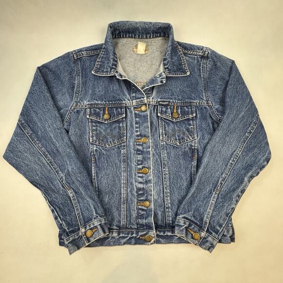 Vintage Wrangler Denim Jean Jacket Womens Measures Medium No Tag USA Made