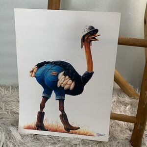 Vintage Wrangler Denim Jeans Advertising Poster Print Ostrich In Cowboy Boots